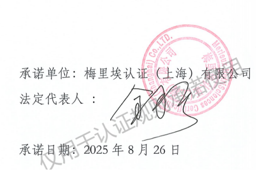 本认证机构已知晓《国家认监委关于加强认证规则管理的公告》(认监委公告 2025 年第9 号)的相关要求,并郑重作出如下承诺: