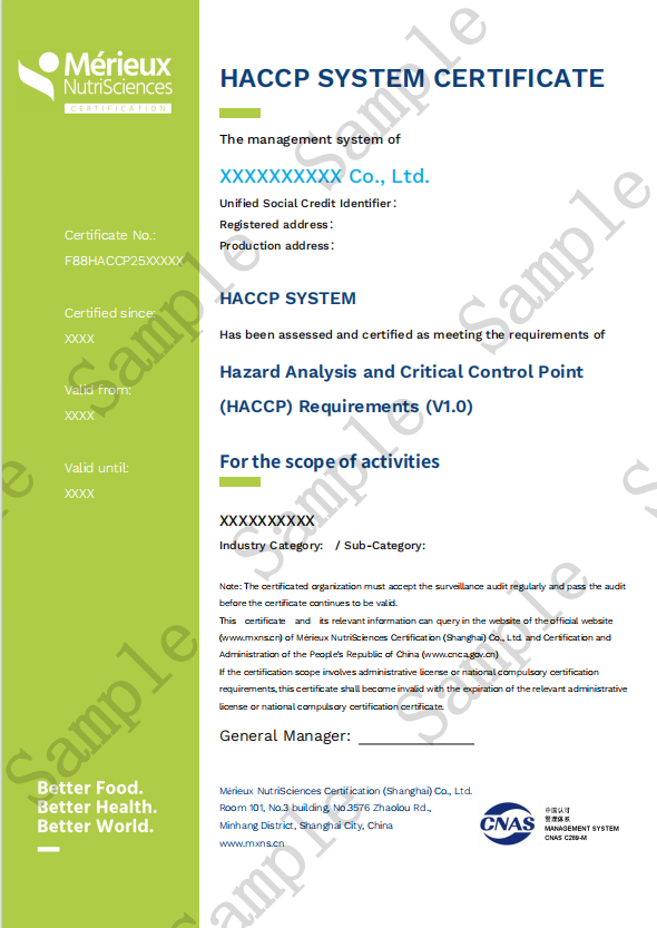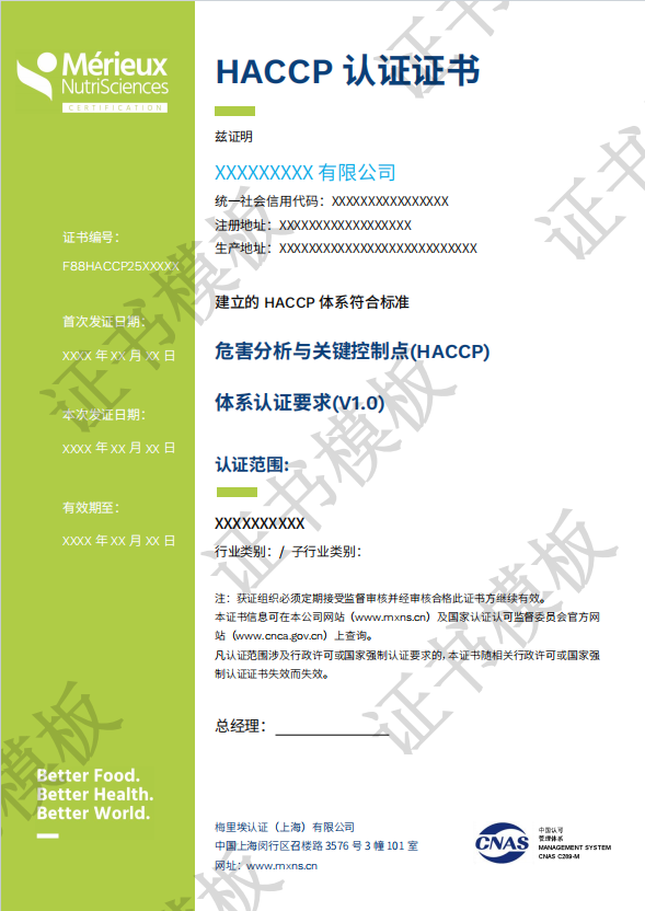 认证依据: 危害分析与关键控制点(HACCP)体系认证要求(V1.0);